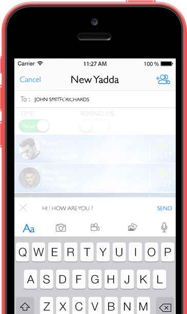 You can send voice notes, videos, text message or a combination of these. Yadda lets you to reach your friends for free.